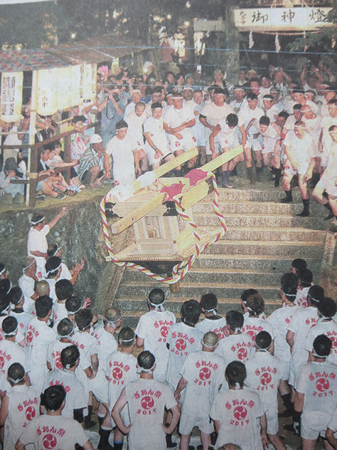 余談ながら、7月15日に行われた「天下の奇祭」(南信・宮田村の夏祭)での「あばれ神輿」はもっとすごく、新造した神輿(200kg)を社殿前の階段から持ち上げては突き落とし、たたきつけてバラバラにする。そして、カケラが氏子にとっては1年間の無病息災のお守りになるから、壮絶な分取り合いだ。信濃毎日の報道写真は、20年前の映像と少しも変わらず改めて感動した。