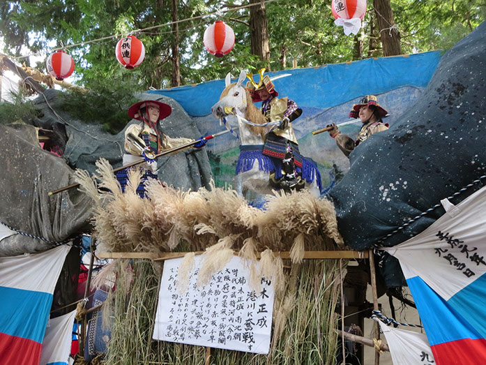 九段4丁目の「義経、弁慶の五条大橋」と並んで人気の「東郷元帥」の山車ですが、いまの子供たちは「あ、お巡りさんが乗っている」というのだそうで、これは、歴史を教えるいい機会かもしれません。<明治は遠くなりにけり>にしてしまってはいけないと思います。