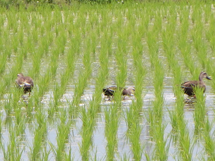 水田にアイガモがやってきて、いつもながらカエルの声が賑やかなことです。