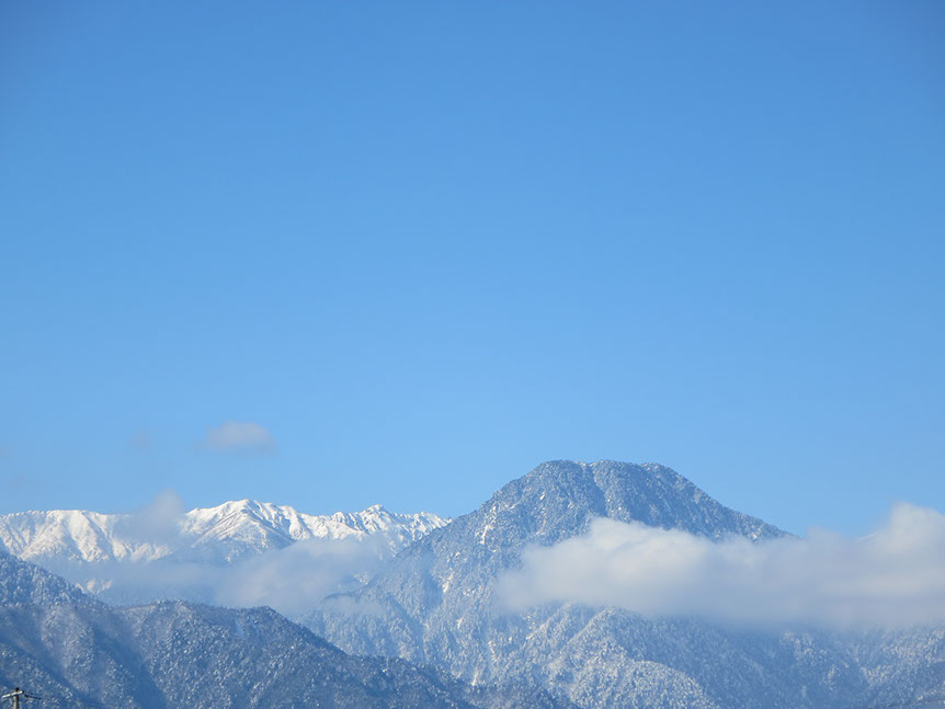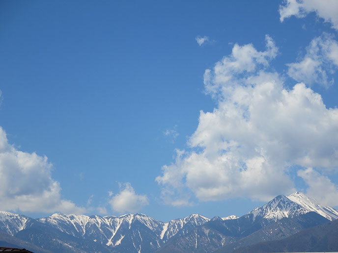 5月中旬、山に常念坊主の雪形がハッキリしてきて、あづみ野では、田植えの作業が進んでいます。この時期、総じて天候にも恵まれ、残雪の山々の眺めもよく、自宅前の道からは、南南東方向に南アルプスも遠望できました。