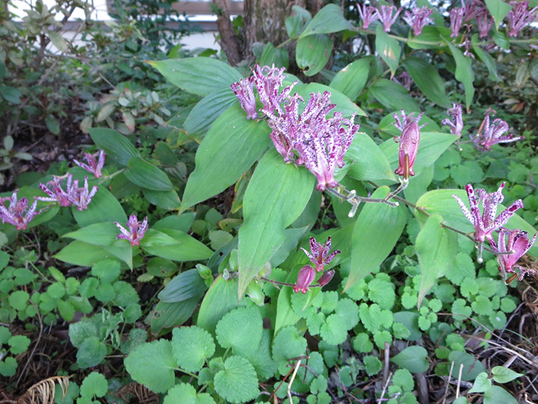 いま真っ盛りのマリ-ゴ-ルドの花の中に、なぜか「ミニトマト」が伸びて実がつき始めた。これは、ハトかトンビのプレゼント(糞)であろう。また、2月の大雪に痛めつけられたイチジクを移し替えたところ、葉の下でカエルが雨宿り、雑草に隠れていたホトトギスの群落は、昨年よりぐっと広がり、この秋が楽しみだ。そして、隣には、ホウズキが5本も出て、青い実をつけている。そして、桑の木の枝を払えば、懐かしい、黒く小さなクワの実も見つかった。